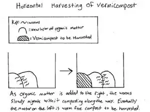Fig 7. Diagram of how to harvest vermicompost using the horizontal method