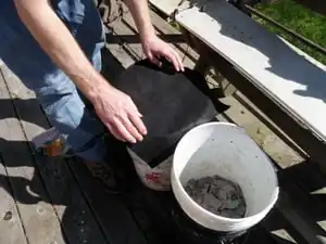 2. Once a storage area is obtained, puncture holes in the lid (if present) and bottom to allow airflow and fluid drainage. If composting in a house, the bin should be elevated to allow drainage of fluid. A set of bricks works nicely. You will also want to put something under the bin to catch fluid.
