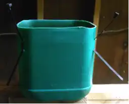 | 4 | Drill 4 holes in the back of the containers. The 2 top holes should be 7 inches from the bottom and 1.5 inches from the side. The bottom holes should be 1 inch below the top holes. A 1/4 inch drill bit should be used for these holes. | ![]() |