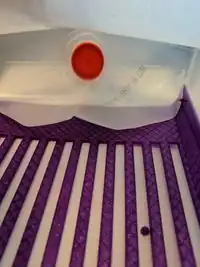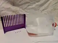 - Fit the milk jug into the slit in the comb, secure one side at a time with the pegs, tucking and trimming the excess "top" part of the jug to make the "back" part of the scoop catcher