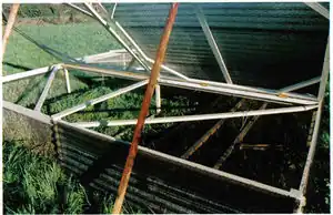 - plastic tarp roof is strapped over ribs of stainless steel pipe