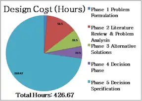 The design costs indicate the quantity of hours that Humangineers as a team has put into this design project. Humangineers has spent 426.67 hours on this design project. The design hours spent in phase 5 total 310.47 hours. Figure 10 represents the distribution of hours that went into this project.