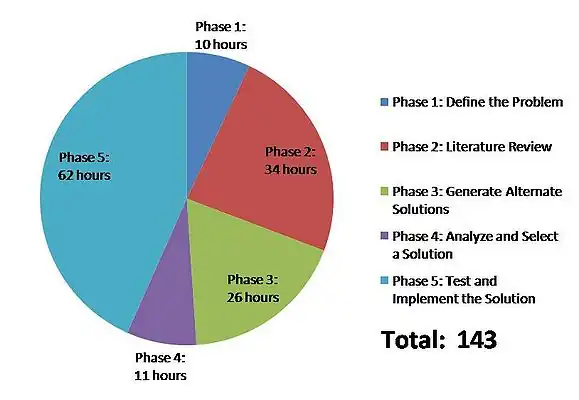Throughout the length of the project we have recorded the time we have spent on each phase of our process, as seen in Figure 3. In total we have spent 143 hours on our project. A majority of our time went into our Literature Review, in which we researched how rubble has been used or removed in the past, and into our Implementation and Testing phase, in which we dug our half-scale trench and tested it.