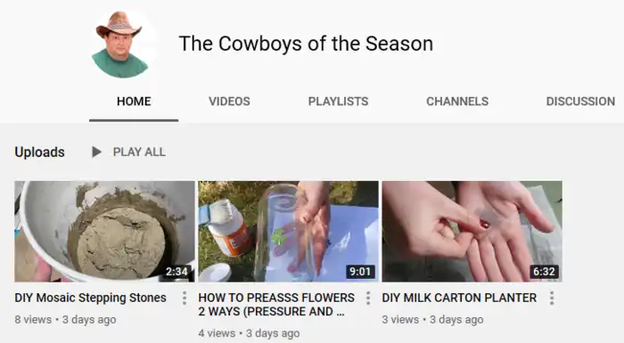 These tutorials were created so that students at Zane Middle School have educational activities during the COVID-19 lock-downs. These crafts are easy and kid-friendly enough for middle schoolers to be engaged and entertained. These videos are good for the lock-downs because they require little to no money to complete and are made of things that are found around the house, or cheaply at hardware/craft stores. Crafting and being creative is a good way to cope with the uncertainness that the COVID-19 epidemic created. All of the videos are very accessible to anybody who would be interested in doing them, and are uploaded to the public youtube channel "The Cowboys of the Season" , as shown below.