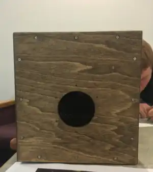 The bellows would not only give a vintage feel to the camera obscura but it would also allow the camera to compact into a smaller size. This meant that the camera could be both easily stored and easily carried. The bellows would also allow users to focus images by allowing them to manipulate the focal length. This would be done by extending or compacting the bellows, which have the lens attached to one side, until the image would appear clearer. The bellows also helped reduced a bit of weight from the model by using fabric bellows over more wood. The original plan was to make a smaller box that would somehow compact into a larger box but that would cost more and also increase the weight. The team wanted the design to be as light as possible without sacrificing durability.