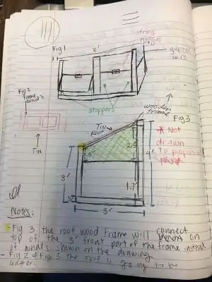 Sketch We first needed to made sketch drawings with dimensions of the compost bin. After careful consideration and talking with the client, we figured out dimensions as well as made a few design decisions.