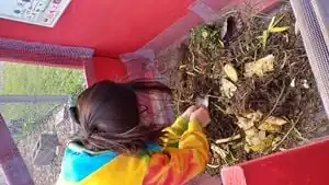 - When the soil in the right side bin appears relatively homogeneous in texture, it can be added to the garden