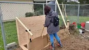 Although functional and sized well, the large corrugated metal roof was not ideal for this project. The roof requires too much effort to lift, both because it is so long and because it is heavy. In the future, the lid should be made from two shorter sections (one over each bin), and should be made of a relatively light material. Instead of using corrugated metal, a corrugated plastic roof would make it a lot lighter although may be more expensive to buy brand new. The wire mesh edges proved to be really sharp so if replaced, it is recommended to fold the sharp edges toward the inner walling of the compost. This is to ensure that the sharp edges are pointed inwards to prevent potential harm.