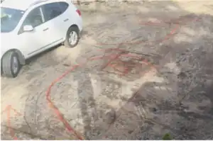 Use duct tape/outdoor tape to line the outsides of the existing paint to prepare for a re-coat of the straight white lines. The margin between the tape should be 2 inches.