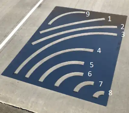 Repeat the cycle of using the next number on the aluminum stencil and visiting each section of the path starting from one side, going to the middle rectangle, and then the last with each consecutive number on the stencil. (RectLeft, RectMiddle, RectRight, RectL, RectM, RectR…etc.).**(Note: Stencil 1 will need to be used 4 times end to end, and stencil 2 two times end to end on each)**