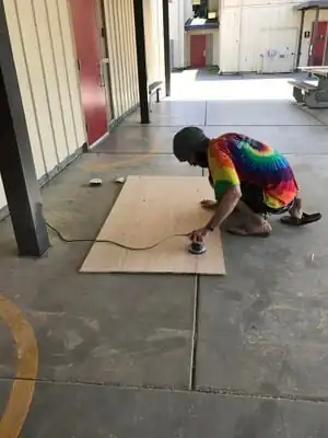 Knock off the hazardous ends of the screws with a hammer once done with design. This prevents any injuries to students from sharp screw ends.