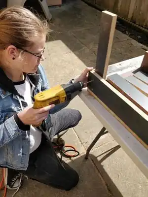 Screw To assemble to cubbies, we had to screw them into the proper placement.