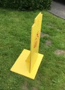 The project went through several design iterations before the group settled on the final product. Initially the group went through numerous brainstorming sessions to isolate traits of a potential design that met as many criteria as possible. Early designs consisted of podiums on wheels, desks on wheels and a podium with nesting sections that could be stacked atop one another to name a few. In the beginning, the whiteboard was designed to be a cabinet with two doors that opened opposite each other, with the insides of the doors also being of a whiteboard material. The whole cabinet was designed to be made of wood with the whiteboard surfaces either being painted on or pressed on like wallpaper. Prototyping occurred in several phases. Initially, prototyping was done with donated materials from SCRAP Humboldt. Those prototypes included a miniature whiteboard design made of stir sticks and a collapsible podium made of Altoid tins. The next prototype was a collapsible stand made out of some scrap wood. The prototype was made by Albert and was inspired by a collapsible foot stool he had in his house. After perusing podium designs on the internet, the group eventually settled on a design that consisted of interlocking pieces that were held together with gravity and pressure. Yerba Mates immediately set to work on recreating the design with pieces of cardboard. Several pieces of cardboard were glued together to give the model rigidity similar to that of wood. After the success of the cardboard podium the decision was made to go ahead and acquire the materials to begin constructing full scale, final design prototypes. After several mistakes the team learned which cuts to make and how to properly make them. A few additional pieces were added to give the podium added rigidity and stability.
