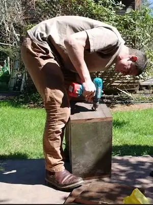 Obtain recycled redwood from a local source and build a box to house all of the components. Other material can be used. The box is not required for the resonance demonstration to function. It mainly serves to cut down on sound and for portability purposes.
