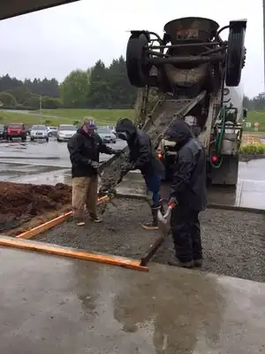 Create a form with plywood and fill five inches with base gravel. Fill the form with cement.