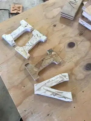 Cut out outlined Roman Numerals from 1/2" Plywood. Sand and round all of the sharp edges. Keep the numerals that are being used in one stamp together to ensure a similar size fit.