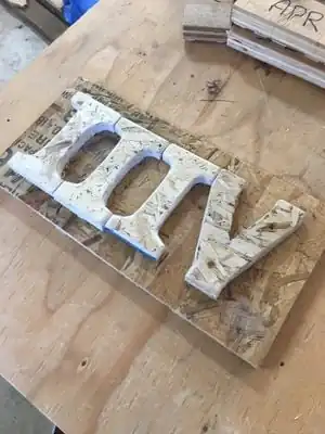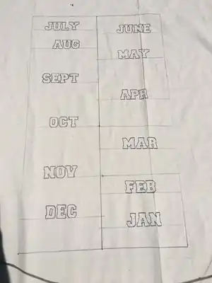 Glue the letters of the abbreviated months onto a plywood base. Make sure to reverse the letters for the same reason as before