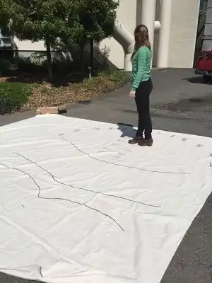 Many prototypes were made before placing the sundial in concrete. Prototyping on a canvas sheet proved effective.