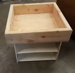 | Step 4 To keep the wood frame from having water damage issues, caulking was used on the seams and a sealant was used on the wood surfaces. We used a salad bowl finishing stain to seal the wood. | |
