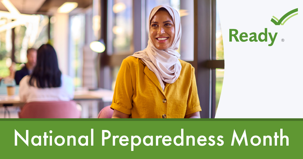 A woman with her hair wrapped smiles. National Preparedness Month.